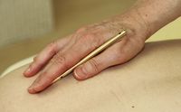 Ausgleichen des Energiekreislaufes nach den Gesetzen von Yin und Yang. Streichung und Massage der Meridiane mit dem Metallstäbchen zur Harmonisierung der Meridiansysteme, Organsysteme und Stimulierung der Akupunkturpunkte.